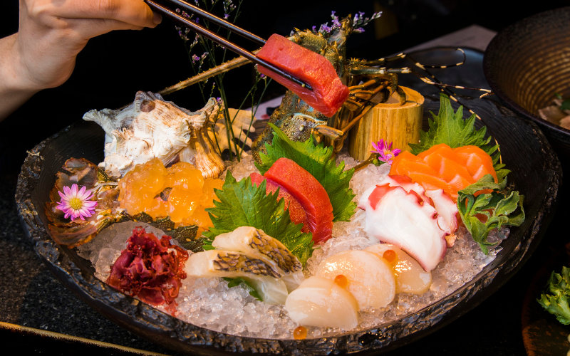 - Ăn kèm với nước tương, wasabi, và một chút gừng hồng.